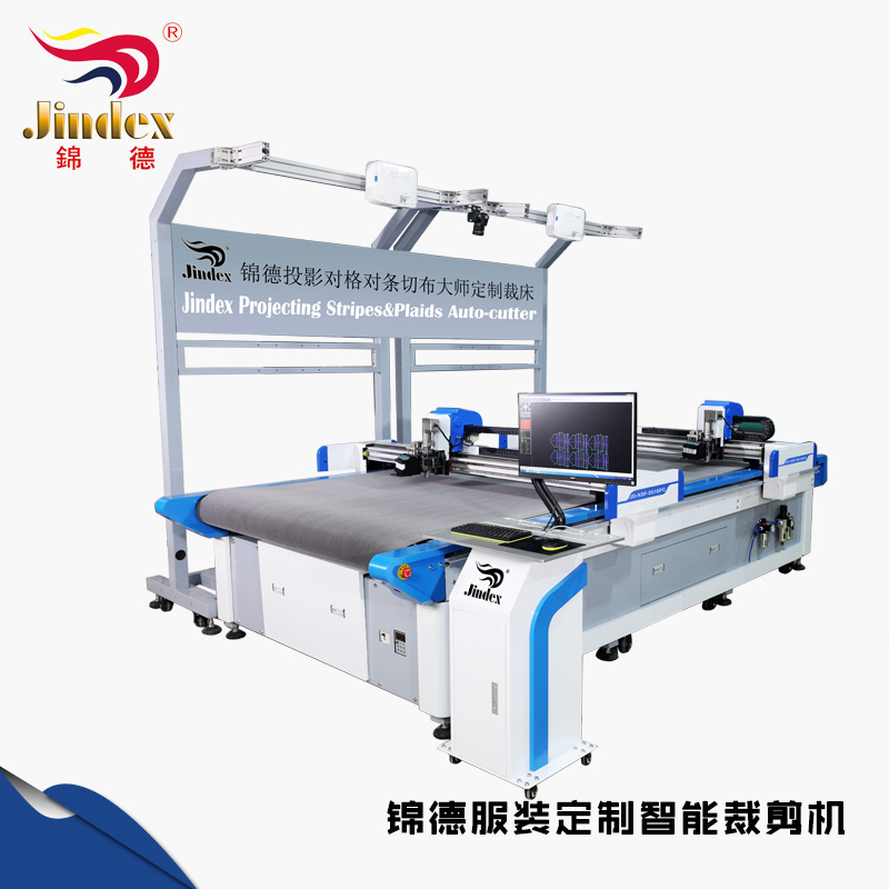1、高級服裝布料(西服布料\高級襯衫\早晚禮服等)對折后精準快速切割,雙橫梁雙機頭同時裁剪,效率比單機頭快一倍,占地面積少,使用人工少,相當于一人看兩臺切割機,誤差小于0.1MM的同時還能保證比人工效率快五倍以上.