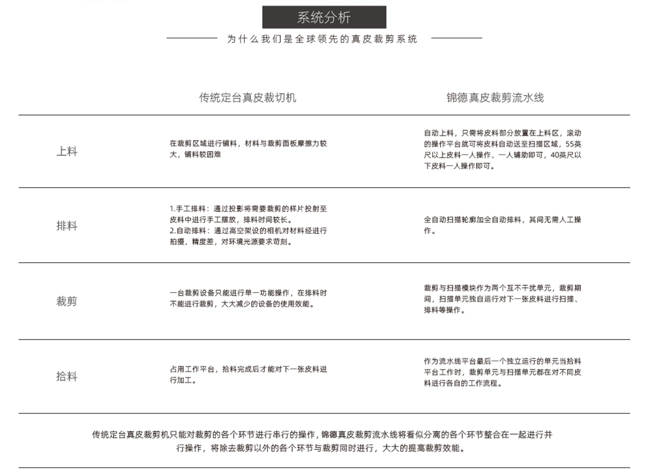 錦德真皮裁剪流水線系統(tǒng)采用先進(jìn)的高清全彩真皮輪廓采集系統(tǒng),通過(guò)高精度掃描...